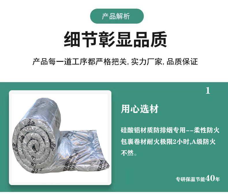 硅酸鋁纖維柔性防火包覆系統的核心材料為耐高溫無機纖維卷毯。該產品由硅酸鋁質、堿土硅酸鈣鎂質纖維經過針刺定型成毯,表面封裝阻燃方格筋復合鋁箔制成。