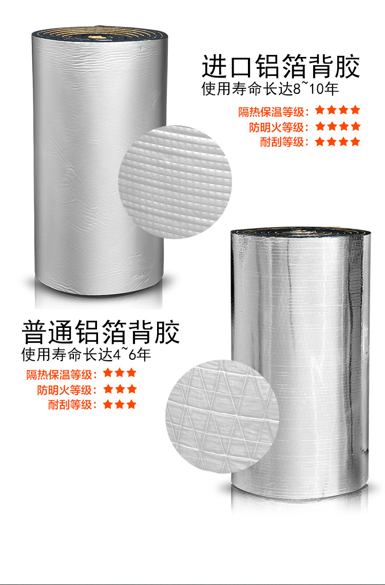 一、鋁箔貼面橡塑保溫板,是可以將不同類別的鋁箔紙粘接到橡塑板材的表面,采用鋁箔復合技術提高其阻濕性能,延緩材料老化的速度,抗氧化性能更強,完全避免了橡塑材料表面龜裂的缺陷,大幅提高了材料的使用壽命。而且外貼不燃鋁箔,進一步提高了保溫層的防火性能。