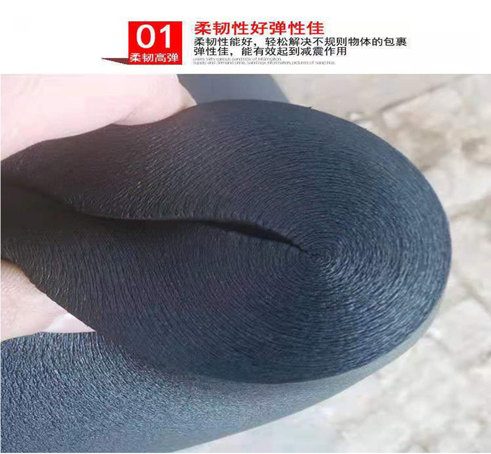 本品為閉孔彈性材料,具有柔軟、耐曲繞、耐寒、耐熱、阻燃、防水、導熱系數低、減震、吸音等優良性能。可廣泛用于中央空調、建筑、化工、醫藥、輕紡、冶金、船舶、車輛、電器等行業和部門的各類冷熱介質管道、容器,能達到降低冷損和熱損的效果。又優異它施工方便、外觀整潔美觀,沒有污染,因此是一種高品質的絕熱保溫材料。由于本材料的柔軟、耐曲繞等特點,可加工制作健身器材、醫療器械、日用品的把套、護套等。