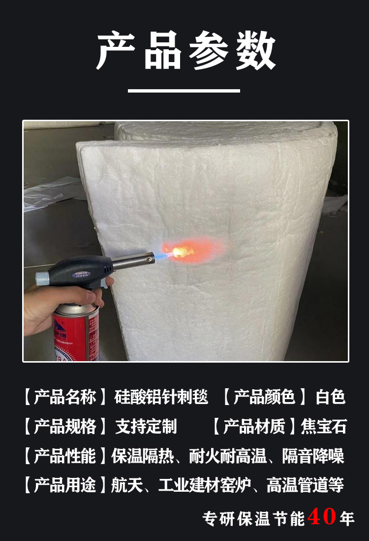 硅酸鋁纖維是將高嶺土、氧化鋁、硅石按Al2O3/SiO2(質(zhì)量比)1∶1混合,放入電弧爐或電阻式電爐中于2000℃以上高溫熔融,將熔體以細流流入爐外,并用高速氣流吹到熔融體上形成纖維化。并按產(chǎn)品二氧化硅和氧化鋁含量進行二次加工制得產(chǎn)品。